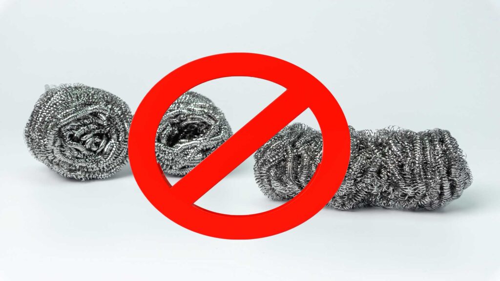Avoid using steel wool as it can leave behind rust stains.